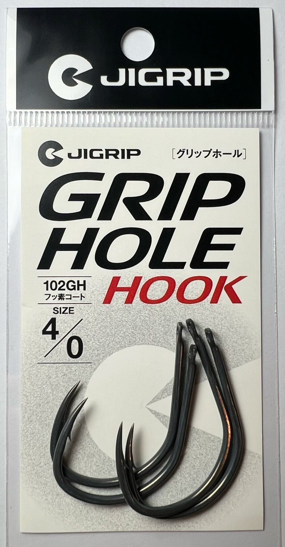 グリップホールは、高精度金型と自動成型機により、タタキ幅を最小に抑え、肉厚に成形したヘッドに滑らかな穴開け加工を施した新世代のジギングフック。このフックのポテンシャルを最大限に発揮する高強度の根付け「グリップノット」を考案。エサ釣りフックの流用では不可能であった高強度の根付け、カン付のフックでは出来なかった軽量化を実現した。新世代の播州釣鈎職人の技術と、ジギングアングラー小野誠が、世界に向けて新たなジギングフックを提案する。